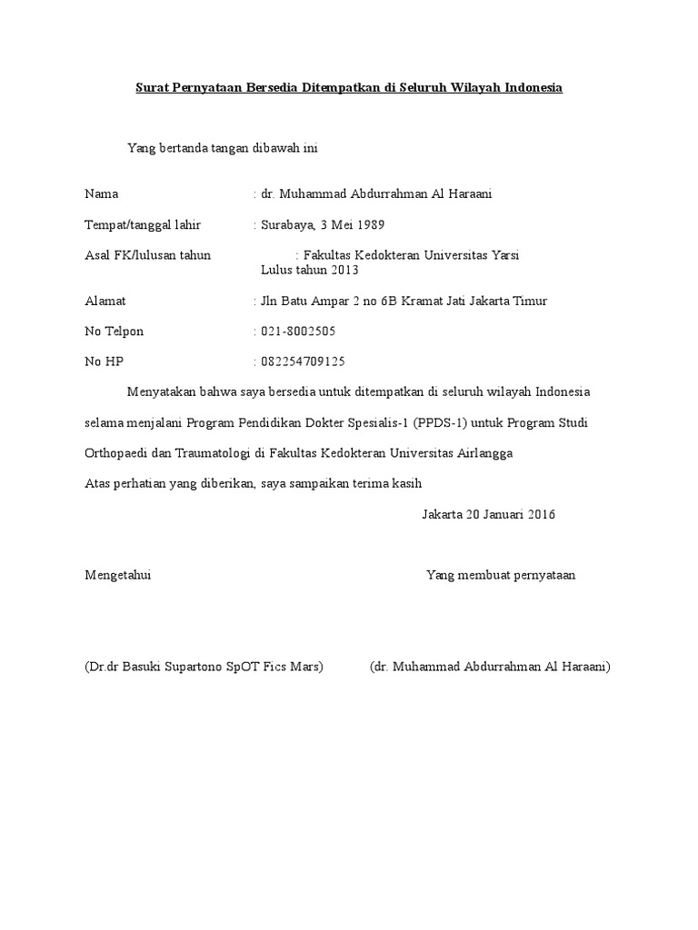 Contoh surat pernyataan bersedia ditempatkan di mana saja contoh surat pernyataan bersedia ditempatkan dimana saja merupakan salah satu s.